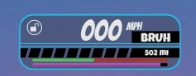 Speedometers include the MPH speed of a vehicle, total vehicle driven distance, a license plate editor, the Rocket Fuel's UI, the vehicle damage UI, and a locking and ejection UI. It's located at the bottom of the screen at any time while being in a vehicle driver seat (or in the case of the Jet, the passenger seat). |