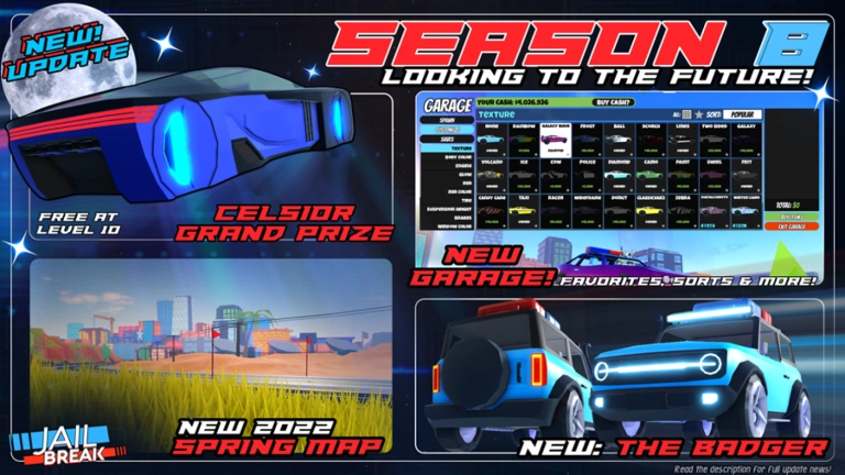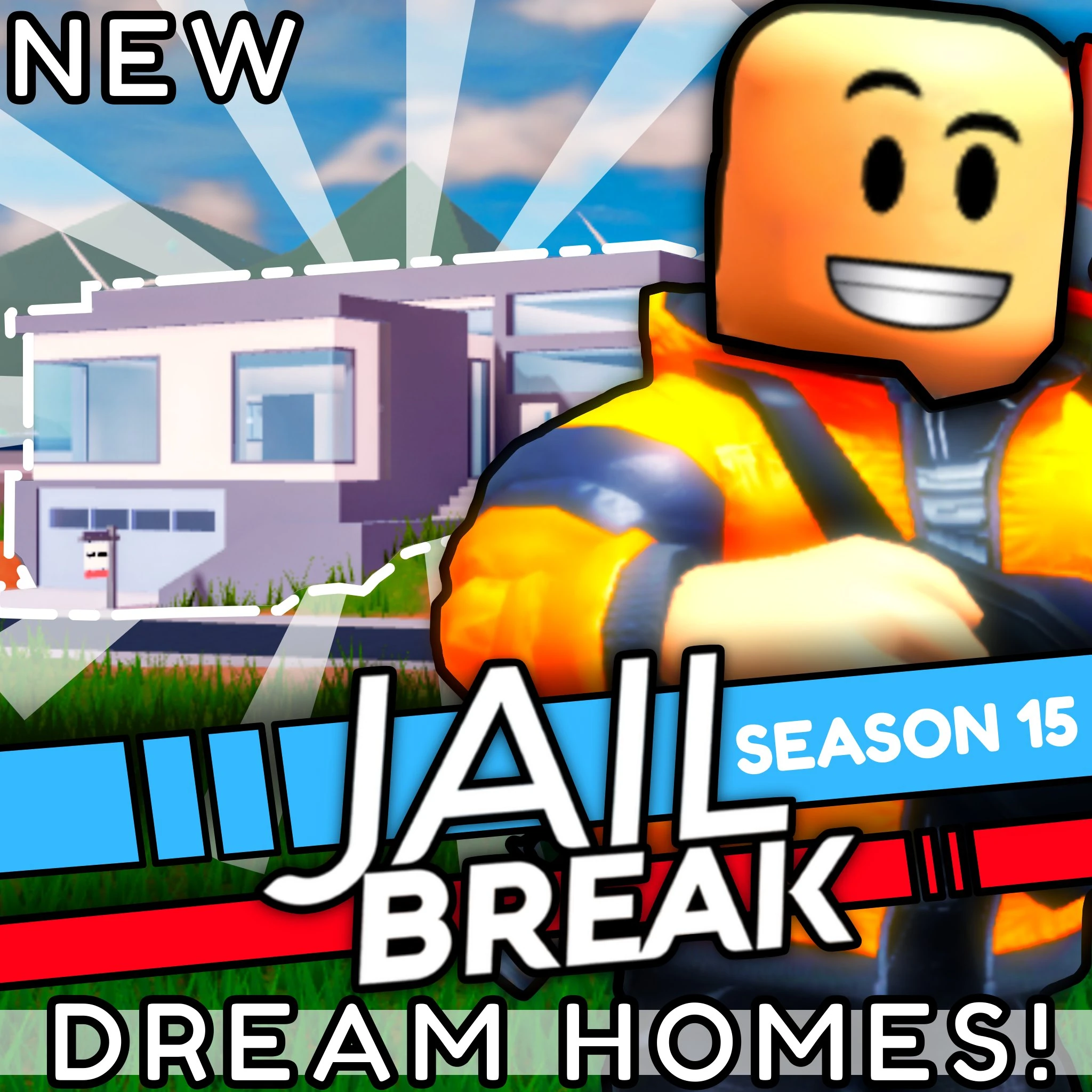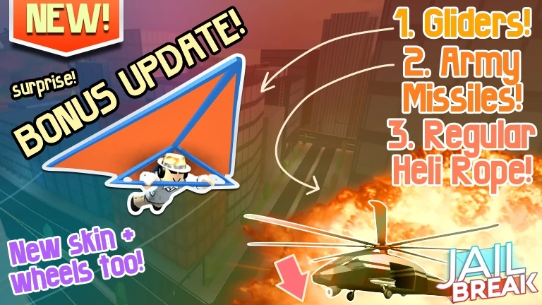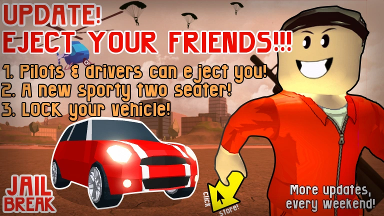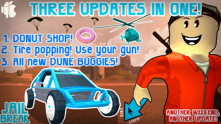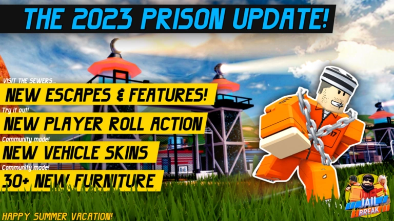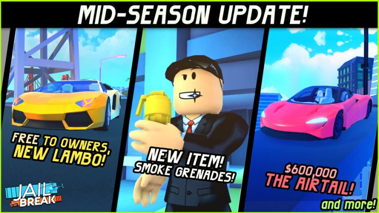 Every time Jailbreak updates, the game icon and thumbnail are changed to reflect the update's content. The game icon and thumbnail are usually reverted a few weeks after the update. Originally updates had a title before/after the Jailbreak text. For example, "Season 4 🎉 Jailbreak!", but recently the title has been mostly just, "Jailbreak". Originally, the game icon often changed between three different styles made by @rastapastatf2 and @SubjectValue on Twitter. Later on, Badimo used their own game icons and thumbnails.