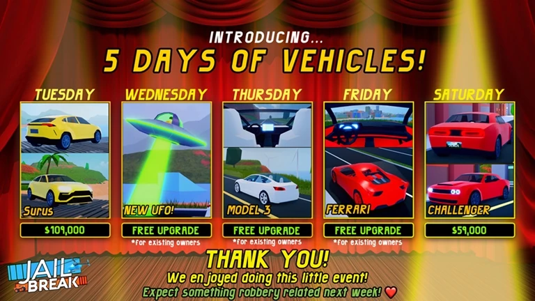There were 3 other 5 Days of Vehicles events but these events also had revamped vehicles.