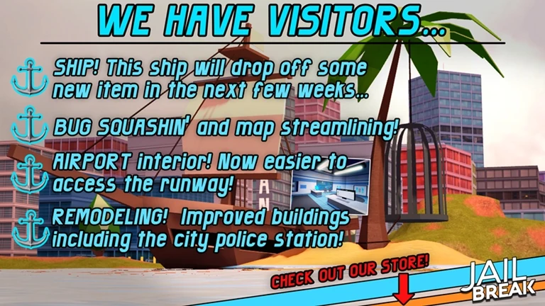On October 27, 2025, Badimo announced Jailbreak first: The AURA IMPROVEMENT PROJECT!, otherwise known as AIP for short. AIP is not only about OG vibes, but also giving Jailbreak new ideas and content, with steady updates as soon as any changes is ready. Since then, Jailbreak has reverted to weekly/bi-weekly updates, with updates mainly being released on Fridays and Saturdays, similar to that during its BETA Stage.
